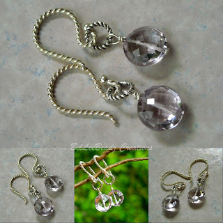 Not the perfect day for photography....faceted pink amethyst coins, sterling silver twisted earwires and thai silver twisted rings for this simple concoction which showcases the fabulous gems and the unusual earwires. Gemstones are a decidedly pretty lavender tone. Perfect everyday earrings...lightweight Amethyst coins measure approx 10 mm in diameter...earrings drop at 3 cm
